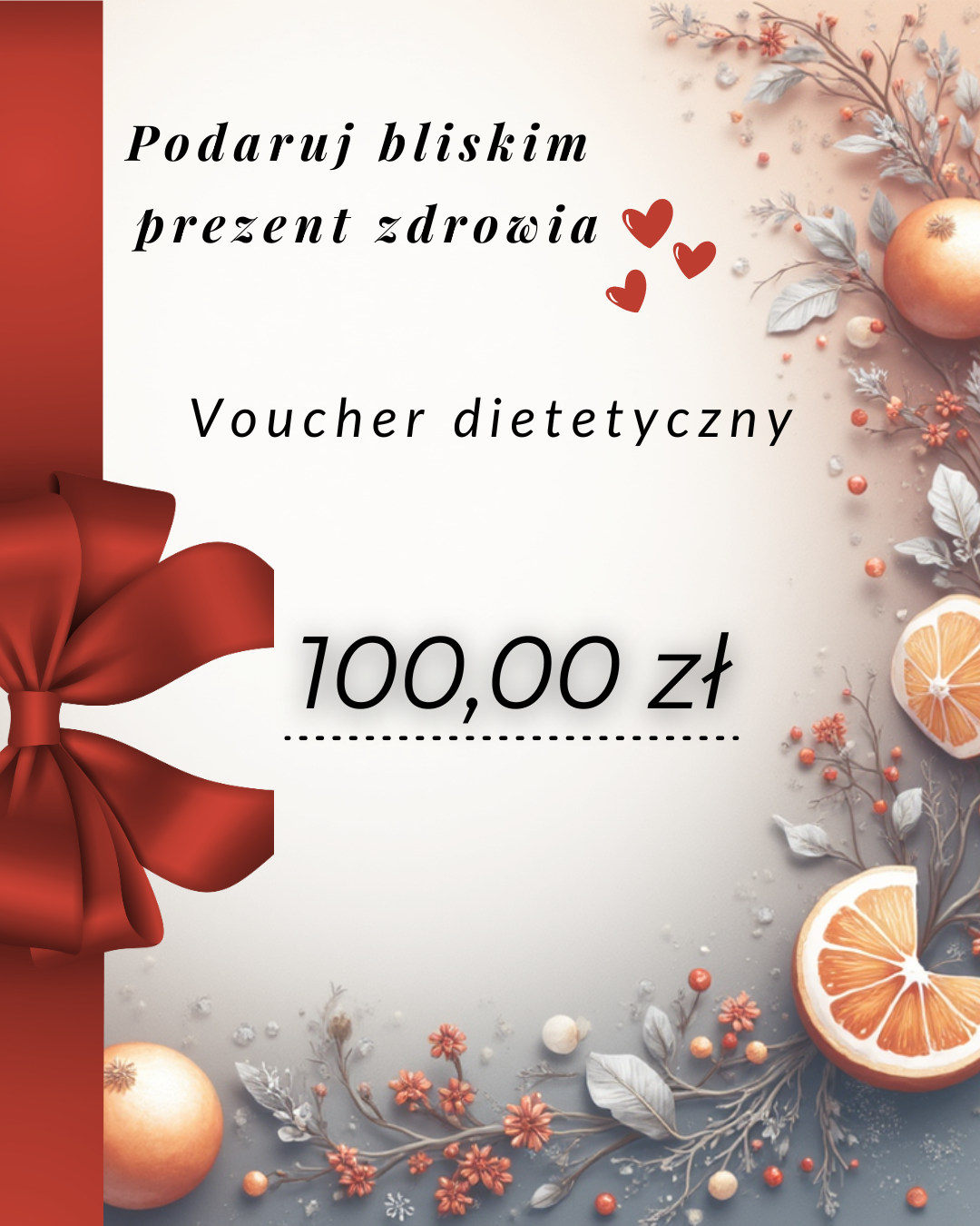 🎁 Podaruj bliskiej osobie coś więcej niż prezent – podaruj zdrowie, wsparcie i motywację. Karta podarunkowa to idealny upominek na każdą okazję. Można wykorzystać ją na indywidualne jadłospisy, konsultacje online lub stacjonarne oraz materiały dietetyczne.